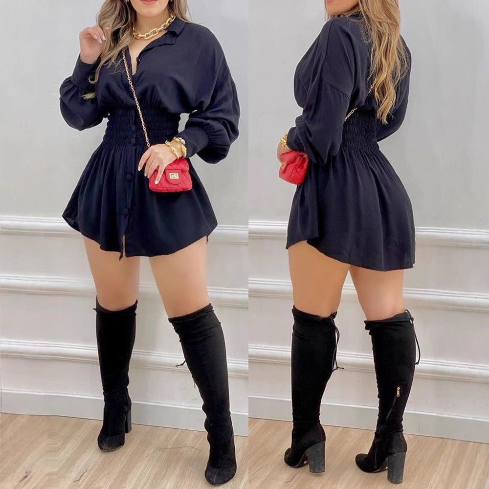 Damen trendiges Hemd-Kleid mit grafischem Design Aliams