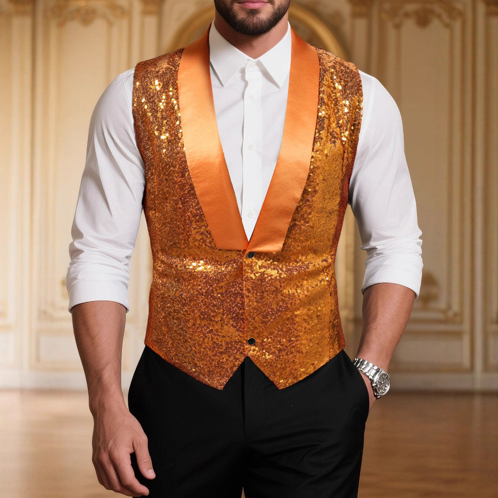 Herren schimmernde Pailletten-Weste mit passendem Fliegenbinder Aliams
