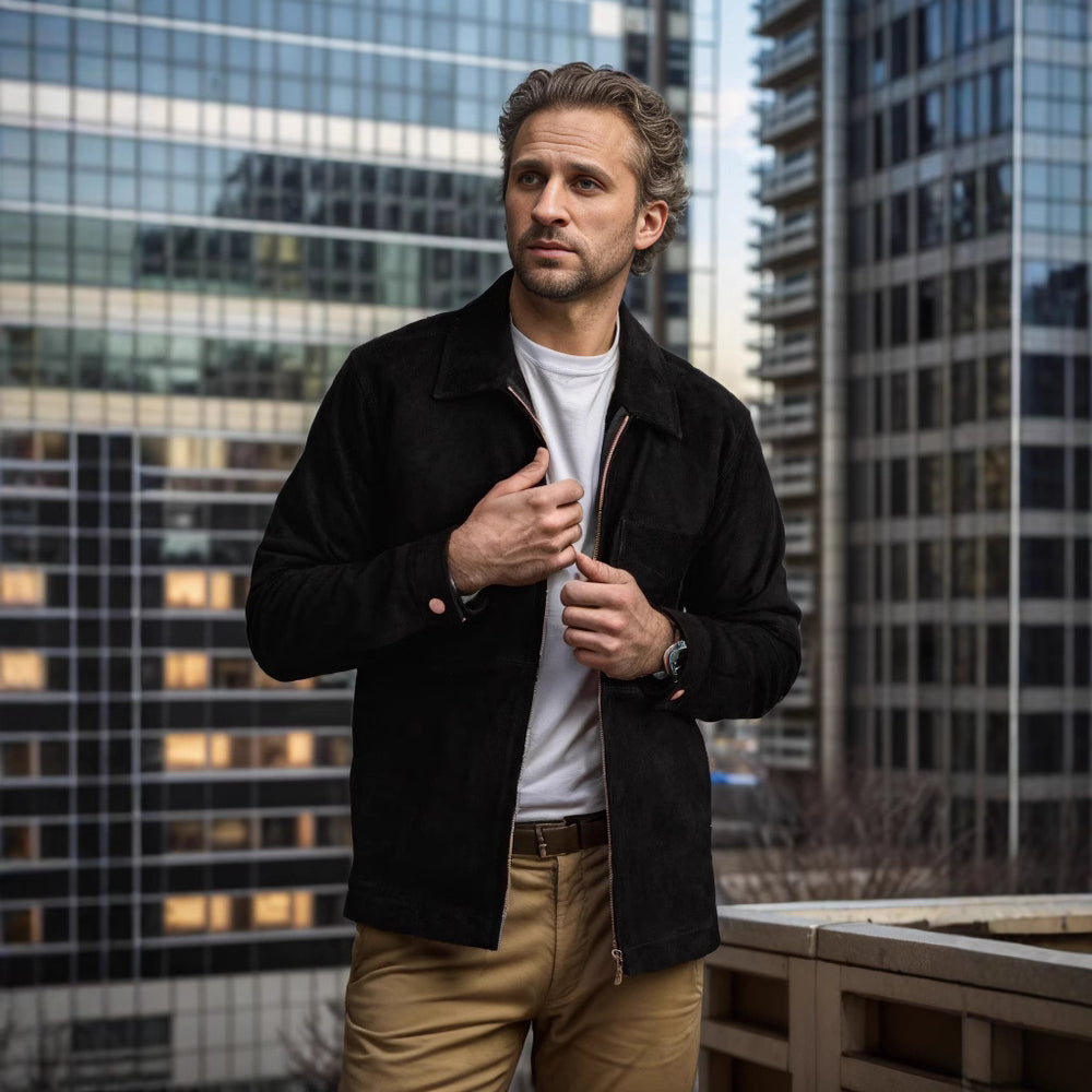 Herren schicke und lässige Wildlederjacke mit Stehkragen Aliams