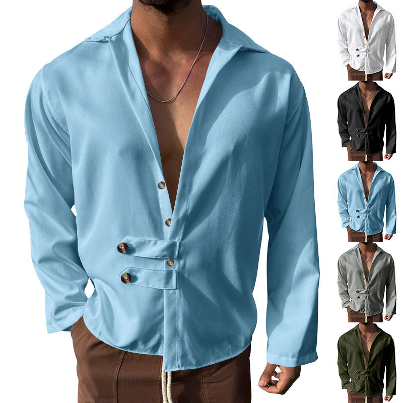 Herren schickes Langarmhemd mit asymmetrischem Kragen Aliams