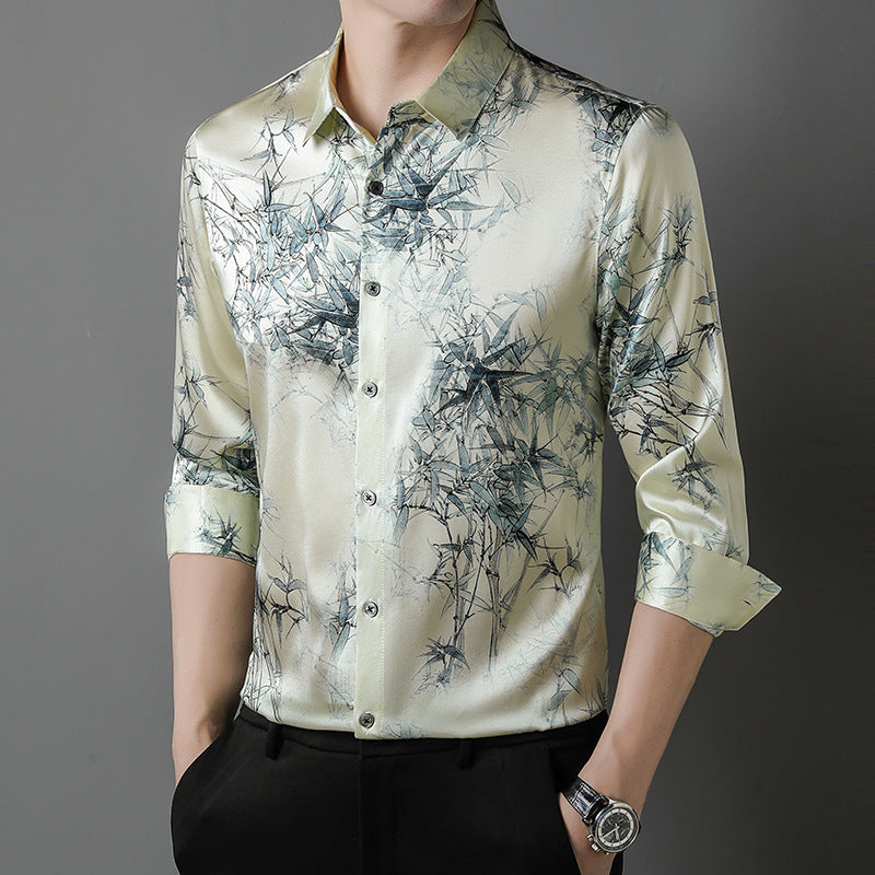 Herren Seidenhemd mit kunstvollem Bambusdruck Aliams
