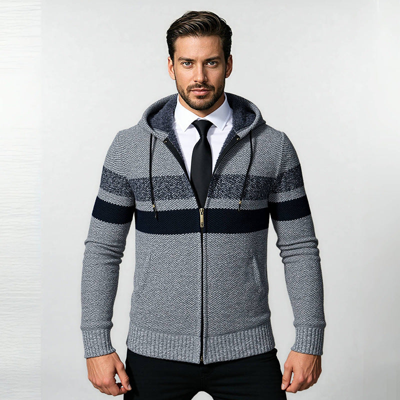 Herren stylische Strickjacke mit Kapuze und innovativem Design Aliams