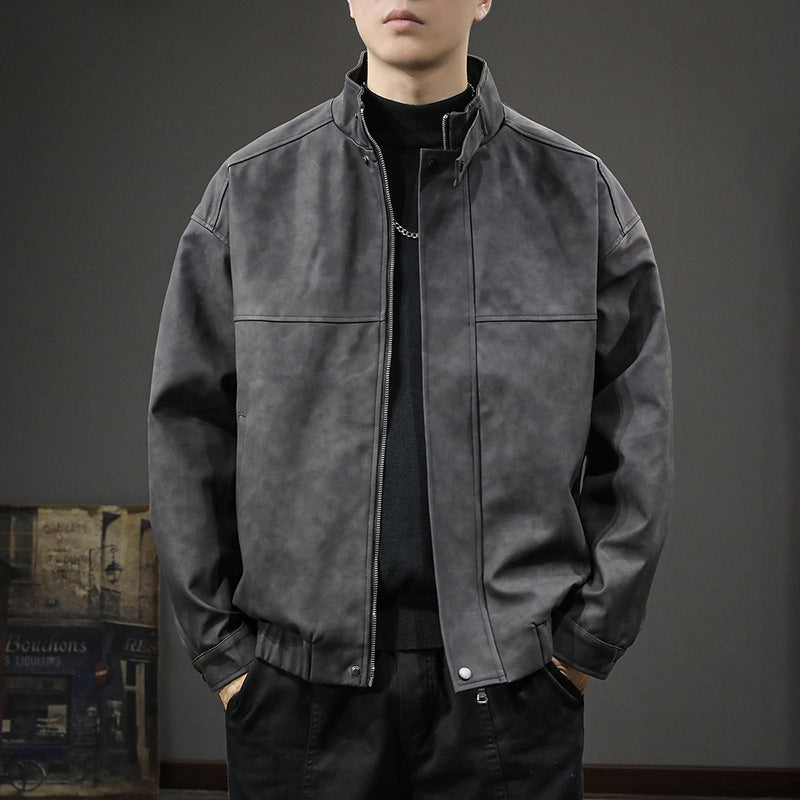 Herren stylische Kunstlederjacke mit hochgeschlossenem Kragen und praktischen Taschen Aliams