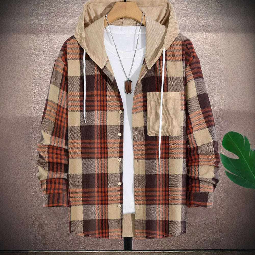 Herren Überhemd mit integrierter Kapuze und Karomuster Aliams