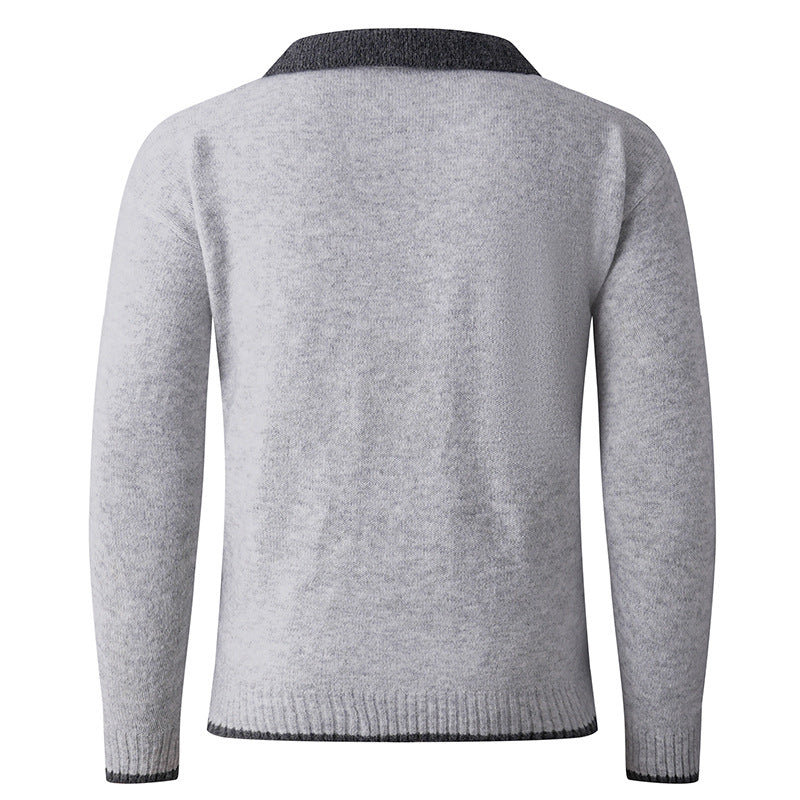 Herren V-Ausschnitt Pullover mit hochwertiger Textur und kontrastierendem Kragen Aliams