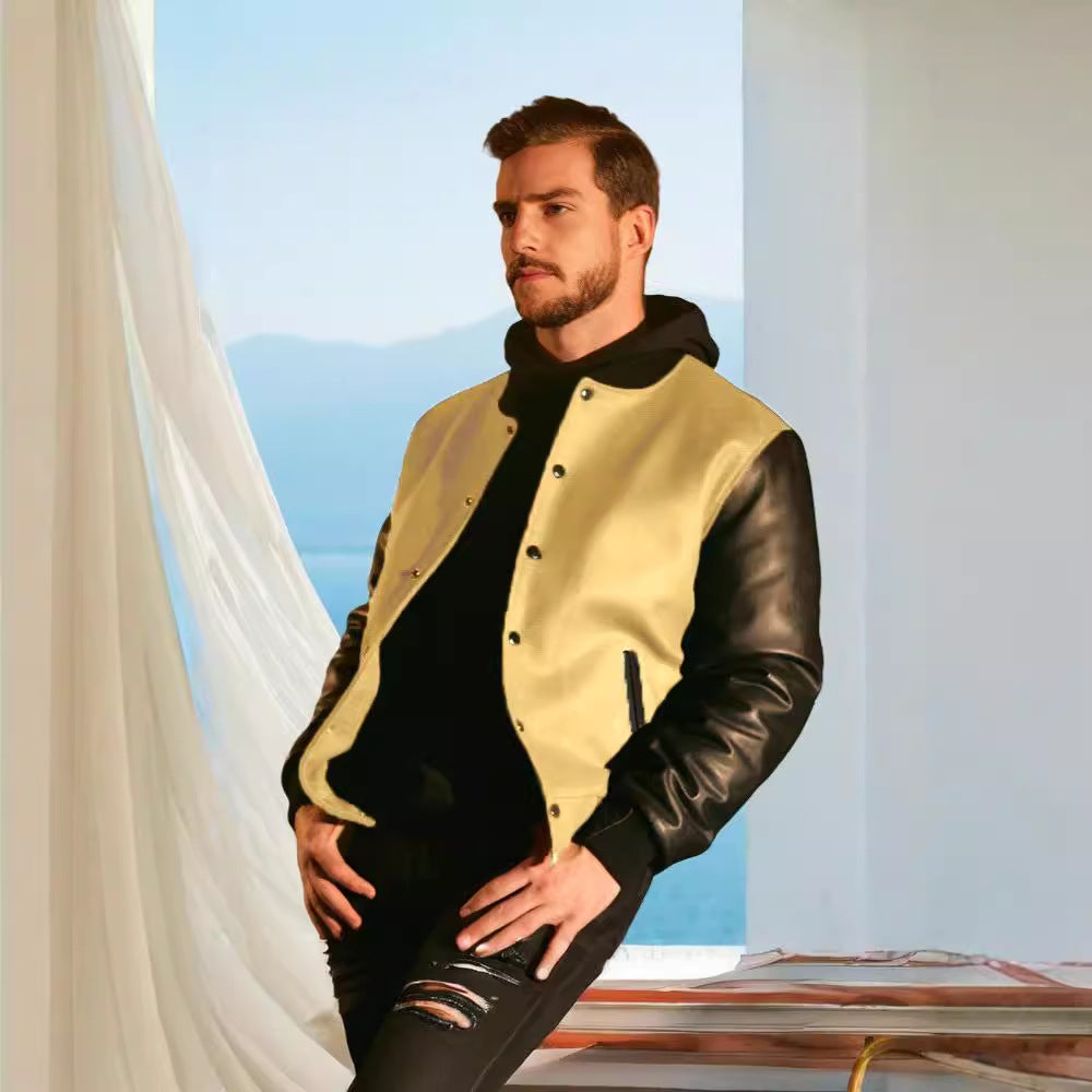 Herren sportliche Bomberjacke im College-Stil mit elastischen Bündchen Aliams