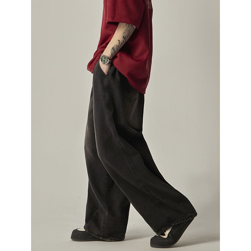 Herren weite Denim-Hose im urbanen Stil mit lässigem Schnitt und bequemem Gummizug Aliams