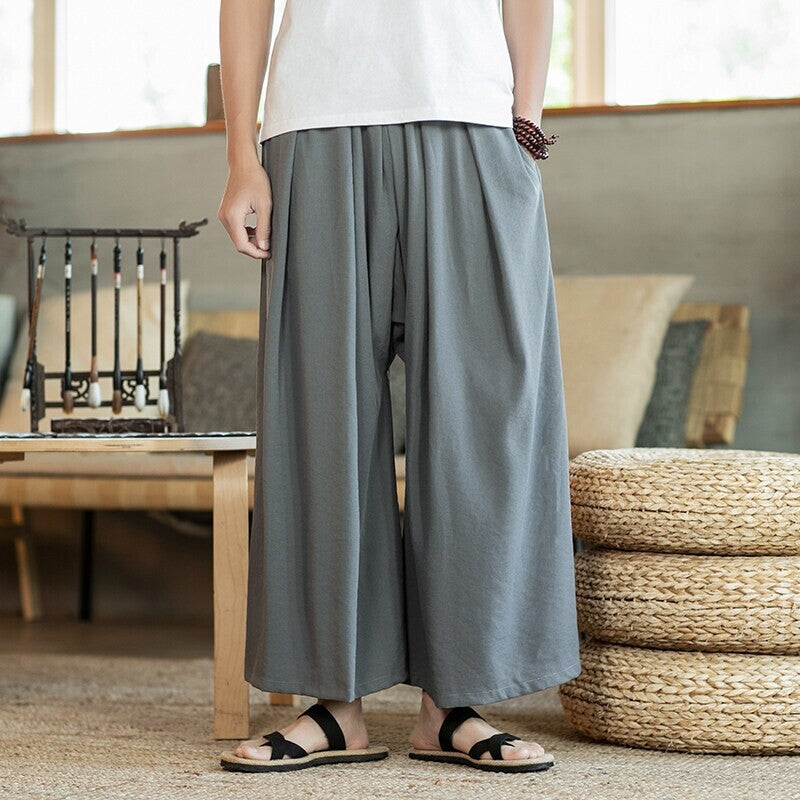 Herren Weit geschnittene Baumwollhose mit elastischem Bund und seitlichen Taschen Aliams