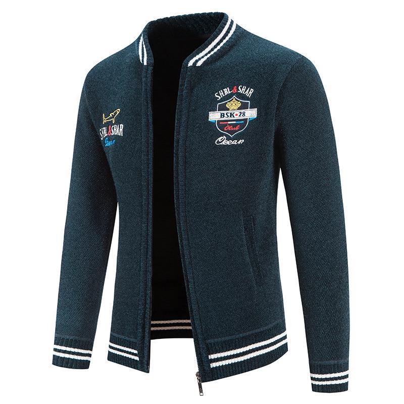 Herren sportliche Strickjacke mit Stehkragen und abwechslungsreicher Stickerei Aliams