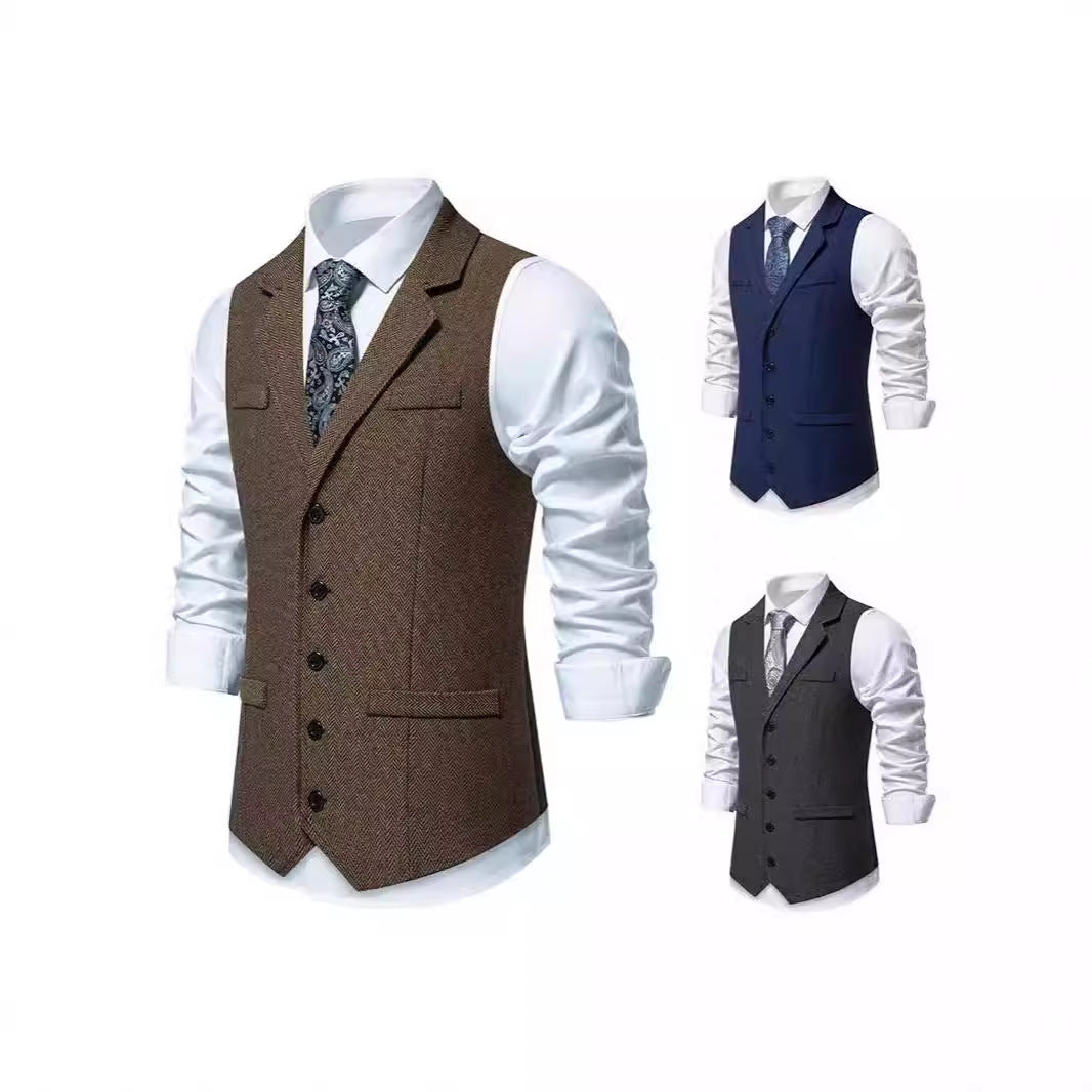 Herren Anzugweste im klassischen Herringbone-Design mit praktischen Taschen Aliams
