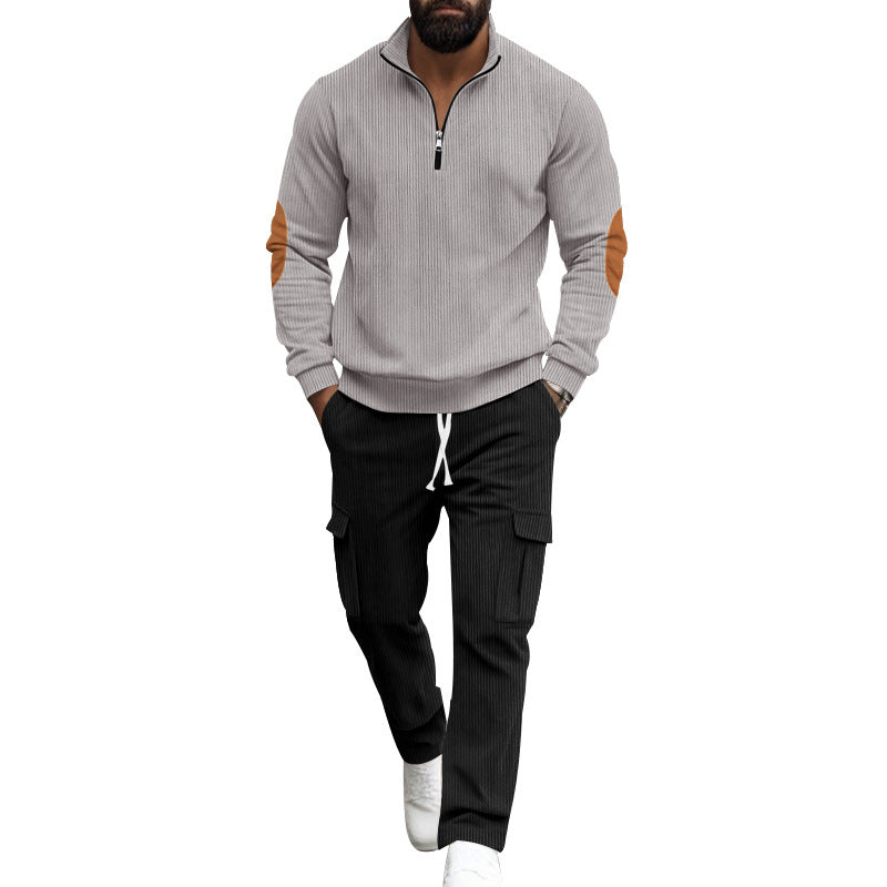 Herren sportlicher Fleece-Pullover mit Reißverschluss und Cargo-Hose Aliams