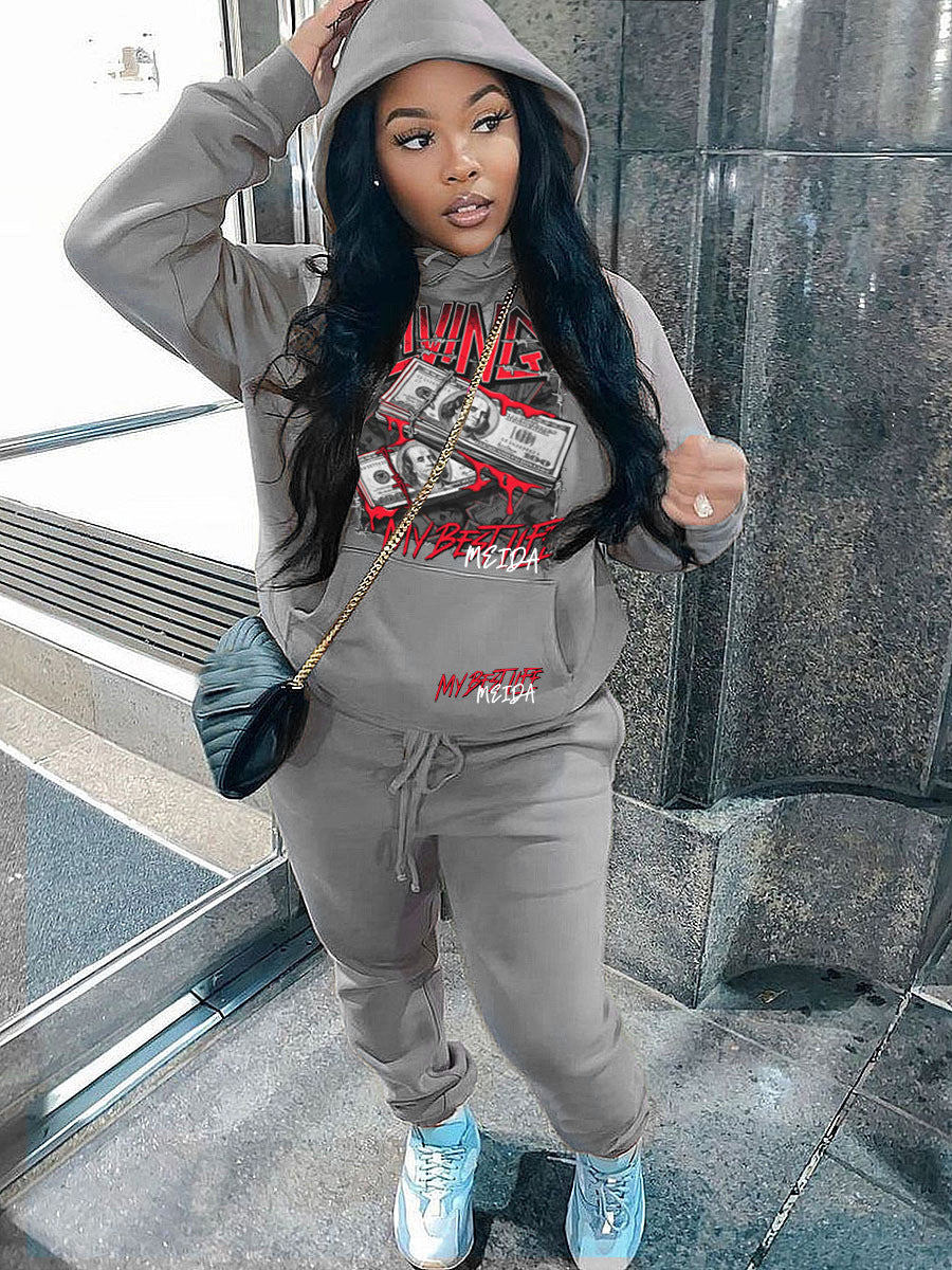 Herren Sportliches Hoodie- und Jogginghose-Set mit kreiertem Glücksspiel-Design Aliams