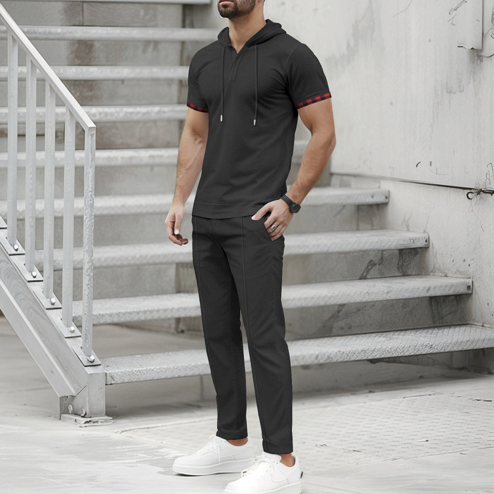 Herren Sportliches Kapuzenoberteil und Stretchhose Set mit atmungsaktivem Strukturmaterial Aliams