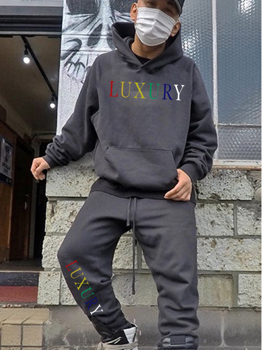 Herren Sportliches Kapuzenoberteil und Jogginghose Set mit modischem Schriftzug Aliams