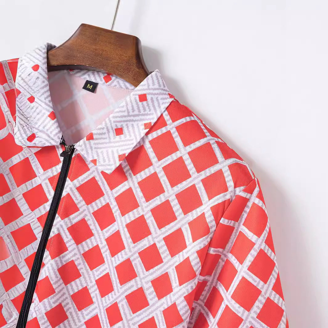 Herren Sportliches Kurzarmset mit Reißverschluss und modernem Muster Aliams