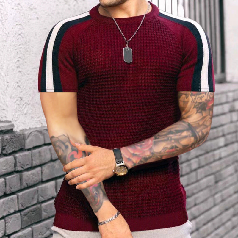 Herren sportliches Kurzarmstrickoberteil mit modischen Streifen Aliams