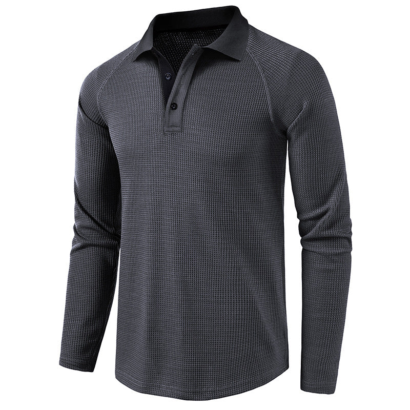 Herren sportliches Langarm-Polohemd mit strukturiertem Kragen und atmungsaktiven Eigenschaften Aliams