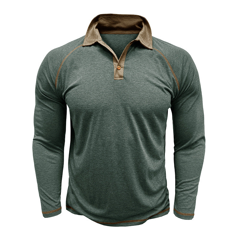 Herren sportliches Langarm-Polohemd mit innovativen Kontrastärmeln und atmungsaktiver Technologie Aliams