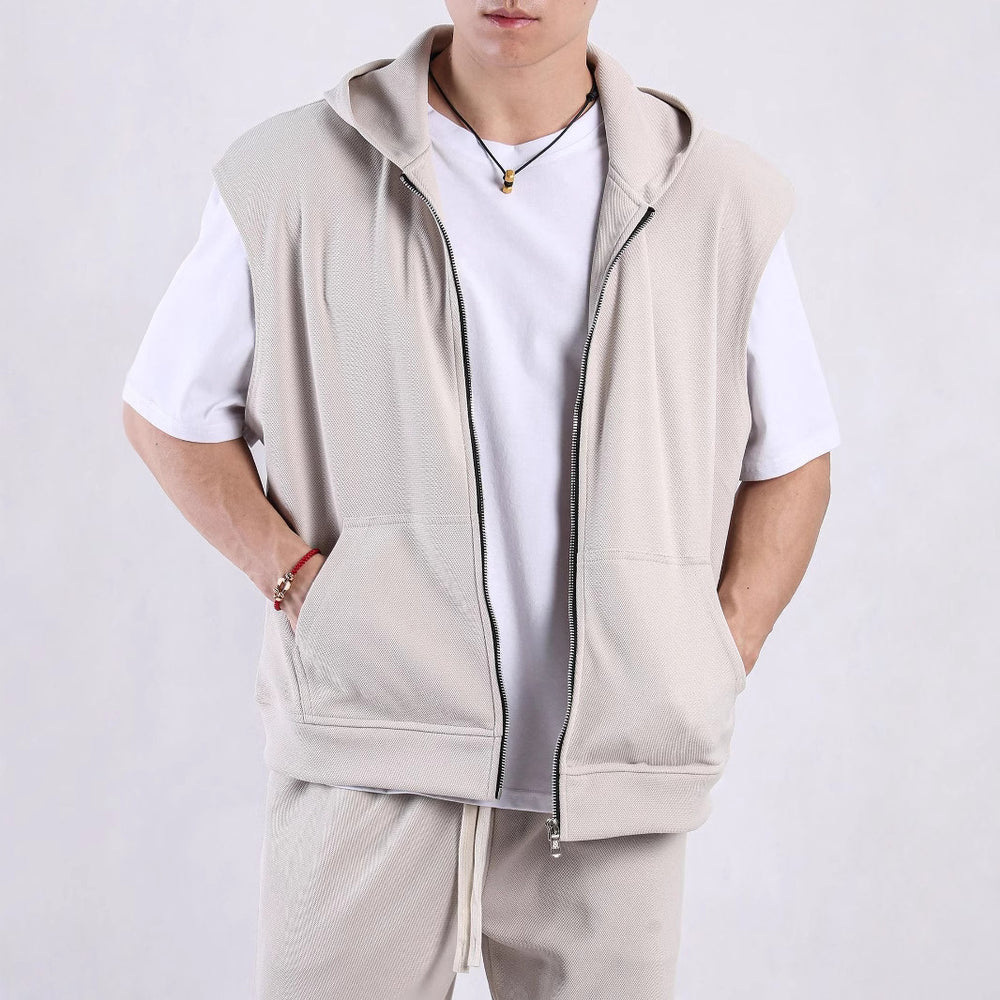 Herren ärmelloses Kapuzenshirt mit Reißverschluss und seitlichen Taschen Aliams
