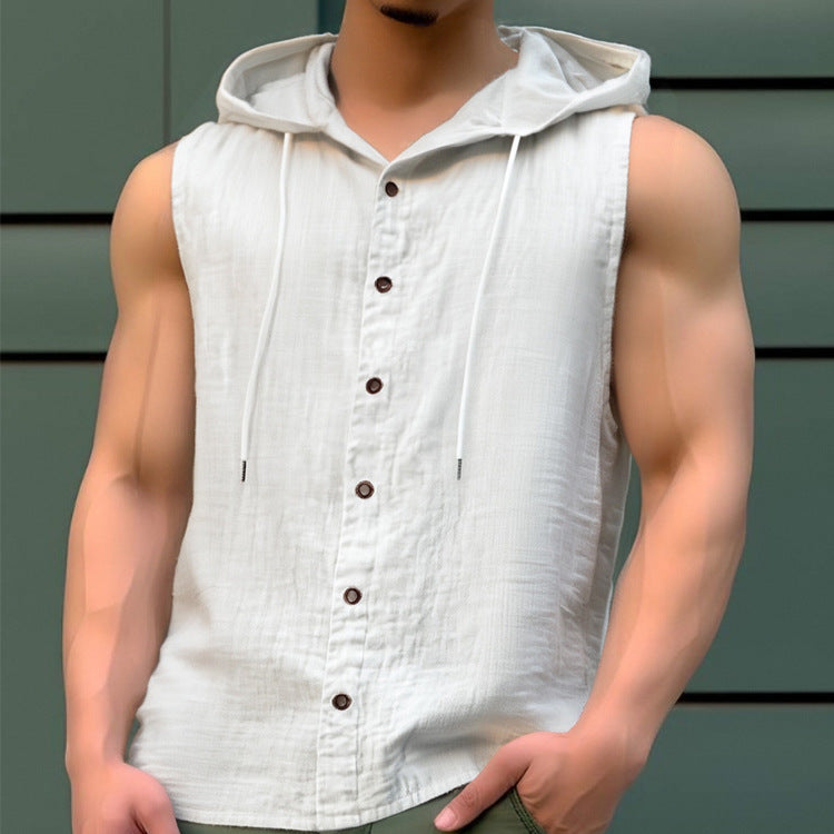 Herren ärmelloses Kapuzenshirt mit Knopfleiste Aliams