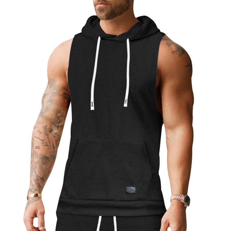 Herren ärmelloses Kapuzenoberteil mit strukturiertem Design und praktischer Kängurutasche Aliams