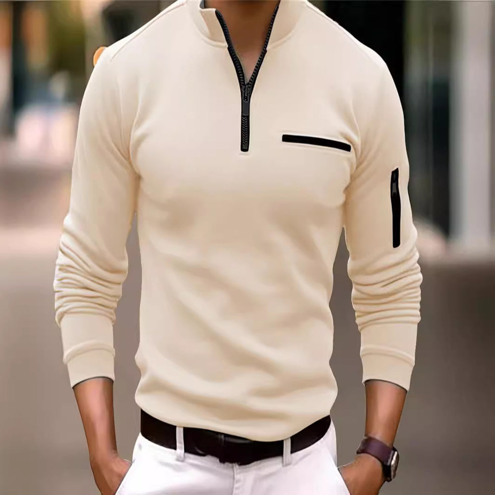 Herren Sportliches Langarmshirt mit modernem Reißverschluss und kontrastierenden Farben Aliams