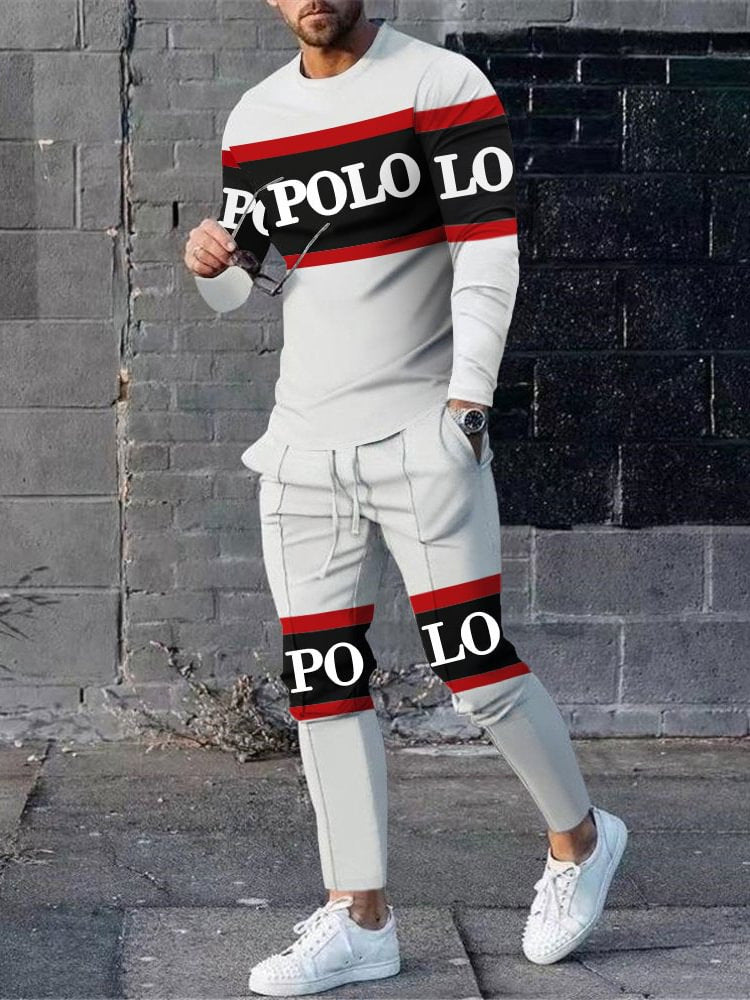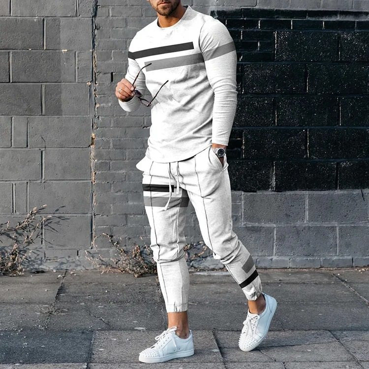 Herren sportliches Set aus Langarmshirt und Jogginghose mit modernem Streifenmuster Aliams