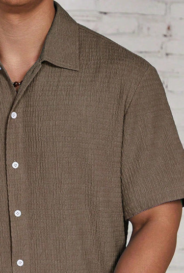 Herren Trendiges Kurzarmhemd mit strukturiertem Design und Knopfleiste Aliams