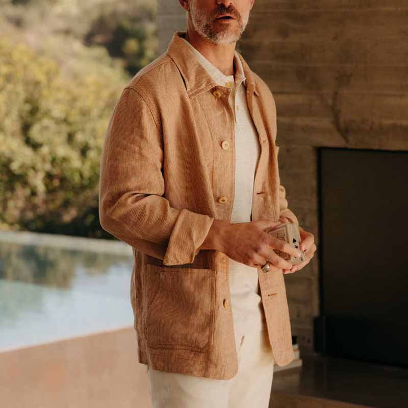 Herren zeitloser Cord-Mantel mit praktischen Taschen und Knopfdetails Aliams