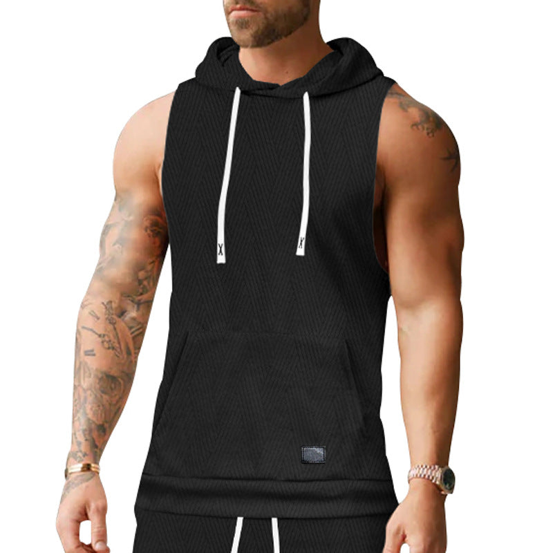 Herren Ärmelloses Sport-Tanktop mit Kapuze und Schnürung Aliams