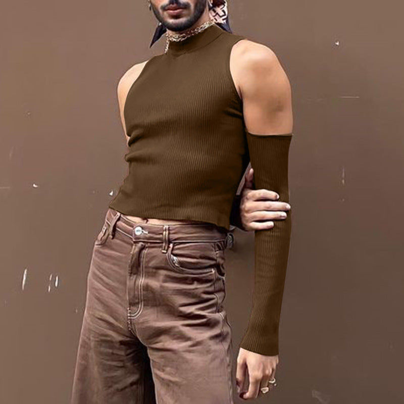 Herren Ärmelloses Oberteil mit modischem Stehkragen und langer Ärmeldesign Aliams