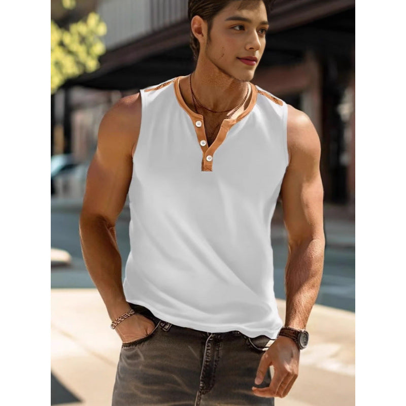 Herren Ärmelloses Sport-Tanktop mit Knopfleiste und atmungsaktivem Gewebe Aliams