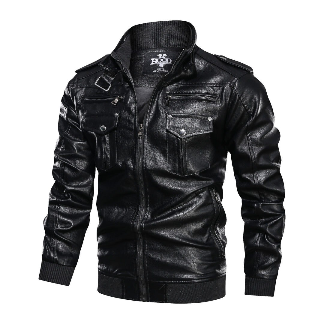 Herren stilvolle Lederjacke mit praktischen Reißverschlusstaschen und trendigem Stehkragen Aliams