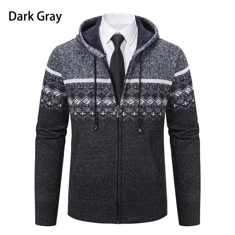 Herren stilvolle Strickjacke mit Kapuze und Norweger-Muster Aliams
