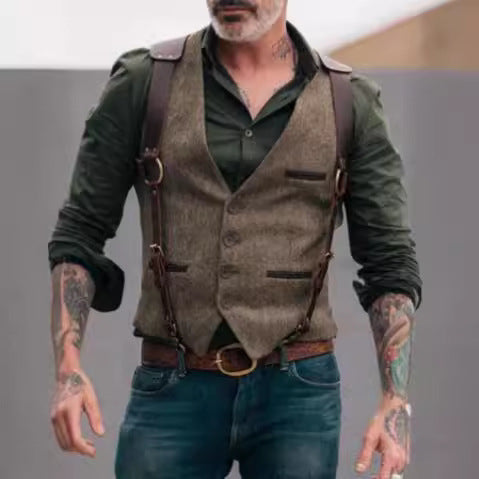 Herren Stilvolle Weste mit Lederdetails Aliams