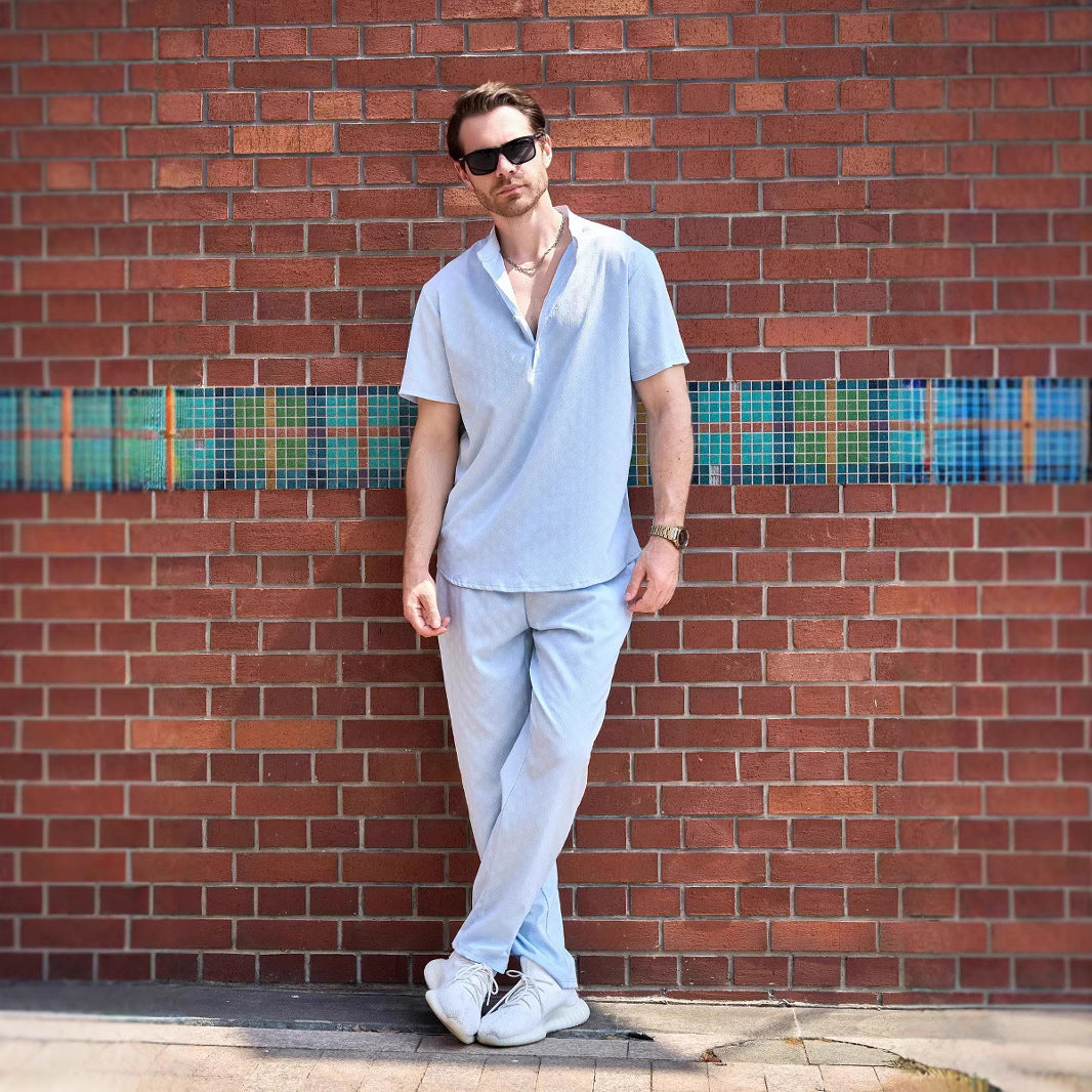 Herren stilvolles Freizeit-Set mit hemdenartig gestepptem Oberteil und bequemen Hosen Aliams