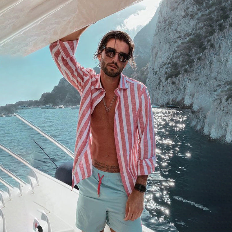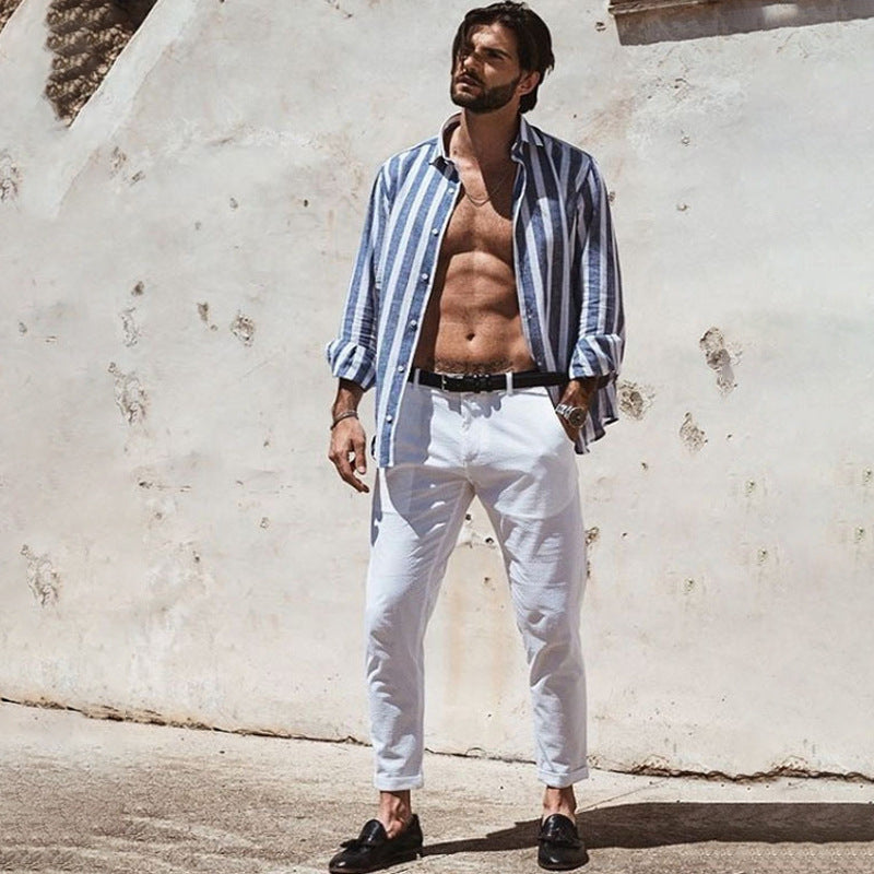 Herren stilvolles gestreiftes Leinenhemd Aliams