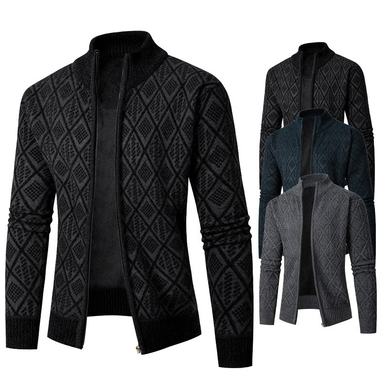 Herren Strickjacke mit modernem Zipper und stilvollem Rautenmuster Aliams