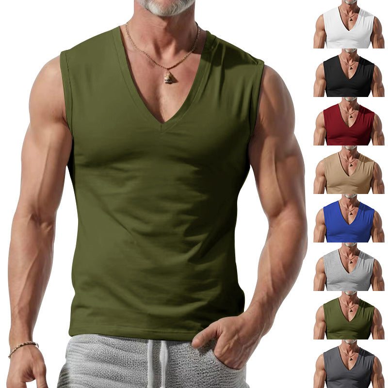 Herren ärmelloses V-Ausschnitt-T-Shirt aus weichem Baumwollmix Aliams
