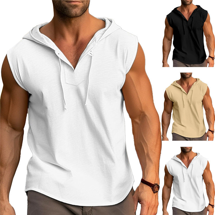Herren ärmelloses Trainingsshirt mit praktischem Kapuzen-Design Aliams
