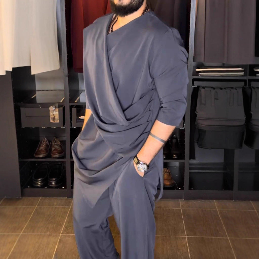 Herren Asymmetrisches Tunika-Shirt mit drapiertem Design Aliams