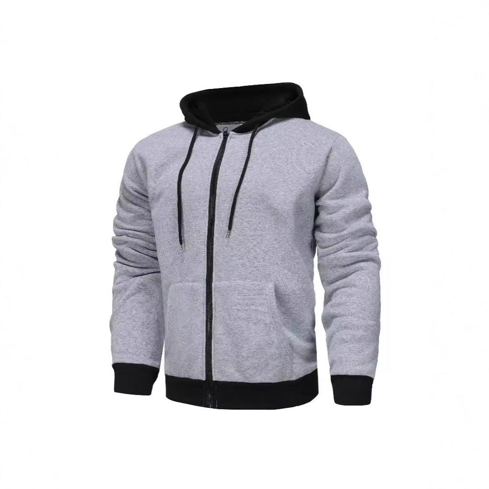 Herren Zip-Hoodie mit Kontrastfarbe und Kängurutasche Aliams