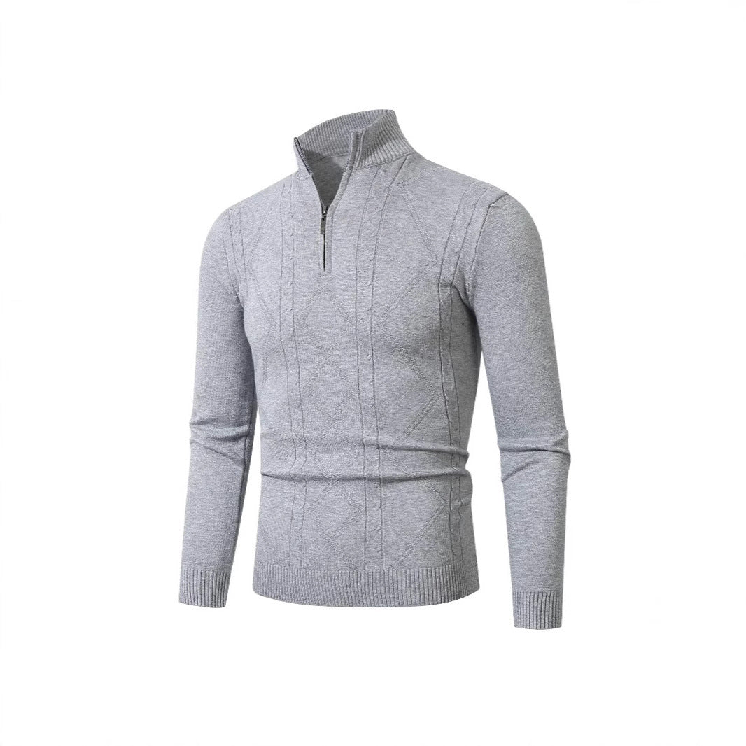 Herren Strickpullover mit modernem Zopfmuster und Kragenreißverschluss Aliams
