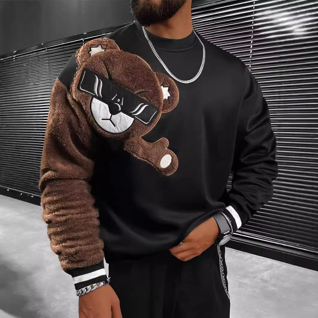 Herren Sweatshirt mit plüschiger Bärenapplikation Aliams