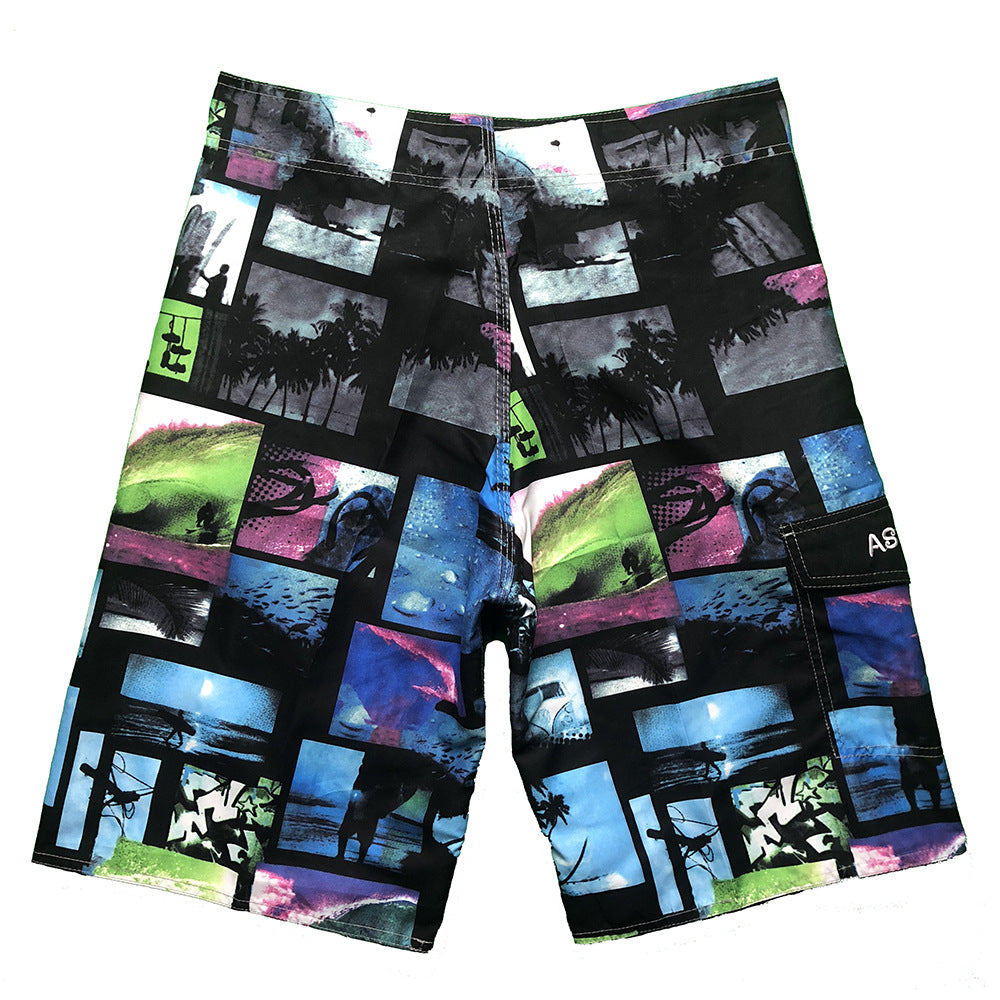 Herren Badeshorts im modernen Fotocollage-Design mit praktischen Seitentaschen und schnelltrocknendem Material Aliams