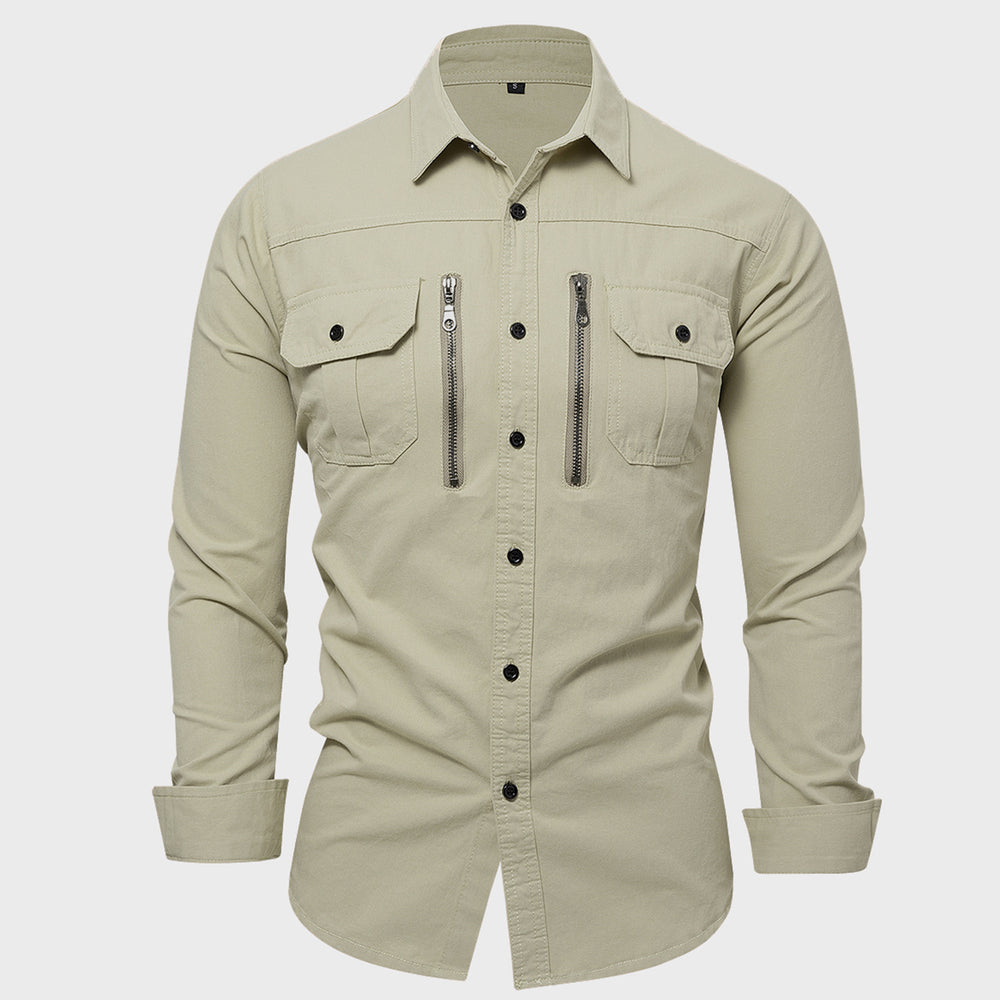 Herren Baumwoll-Hemd mit Reißverschluss und Brusttaschen Aliams