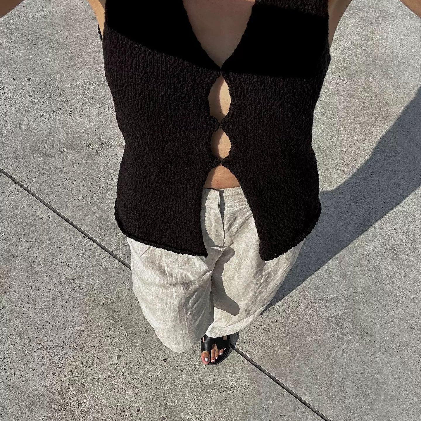 • Modisches Design: Die Weste besticht durch einen modernen, offenen Schnitt und elegante Aussparungen an den Seiten, die für einen trendigen Look sorgen.
