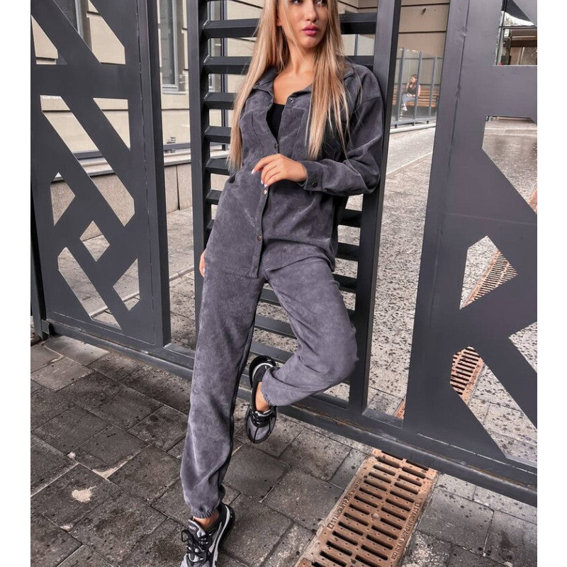 Damen bequeme Lounge-Set mit Knopfleiste und elastischen Bündchen Aliams