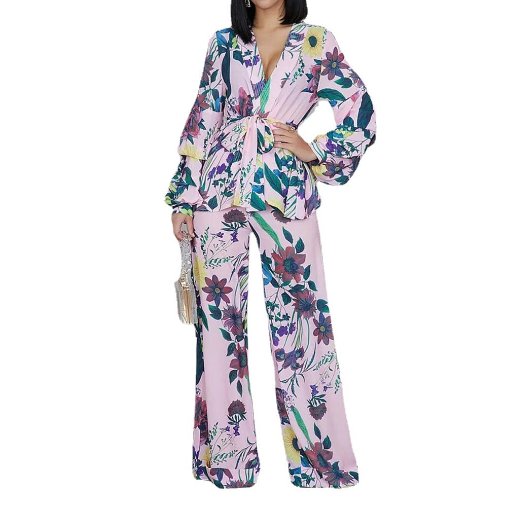 Entdecken Sie das stilvolle Damen Blütenmuster Zweiteiler mit weitem Bein und Bindegürtel von Aliams, das perfekte Outfit für eleganten Anlass und Freizeitaktivitäten. Dieses Set kombiniert feminines Design mit hohem Tragekomfort und ist ideal für die modebewusste Frau.