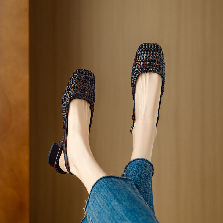 Damen Slingback Sandalen mit Geflochtenem Design und Elegantem Blockabsatz Aliams